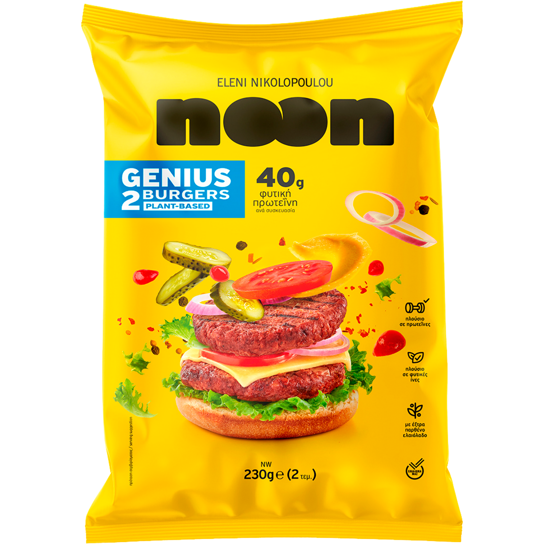 Noon’s Genius Burger sind außen knusprig, innen locker und saftig und werden zu 100 % aus pflanzlichen Zutaten hergestellt – gut für Sie und die Umwelt.
