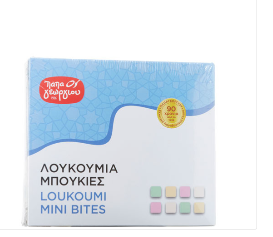 Loukoumi von Papageorgiou ist eine griechische Delikatesse mit ursprünglich orientalischem Ursprung, hergestellt aus Zuckergelee und mit einer Puderzuckerumhüllung. Der Name dieser traditionellen Süßigkeit stammt aus dem Arabischen und bedeutet übersetzt “Ruhe für den Gaumen”.